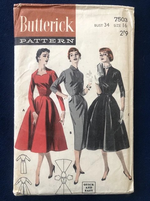 1950s Butterick 7729 Dress Pattern Bust 34 Vintage Sewing Pattern